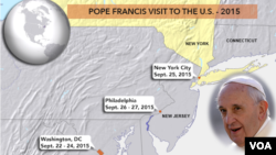 Uretse kuri Kongre ya Amerika, no kuri perezidansi I Washington, hamwe no ku cyicaro gikuru cya ONU I New York, Papa Fransisiko azasoma misa mu mijyi itatu, harimo na misa izabera hanze, mu mujyi wa Philadelphia aho miliyoni ebyiri z’abakirisitu byitezwe ko bazaba bateraniye mu masengesho.